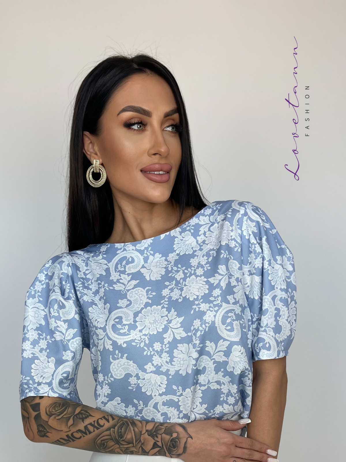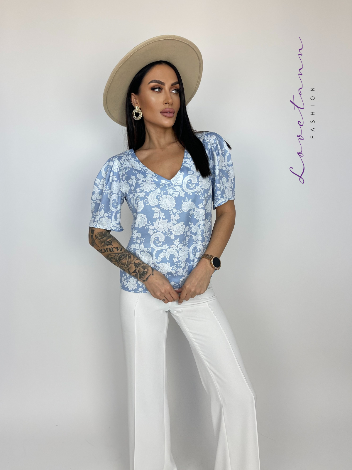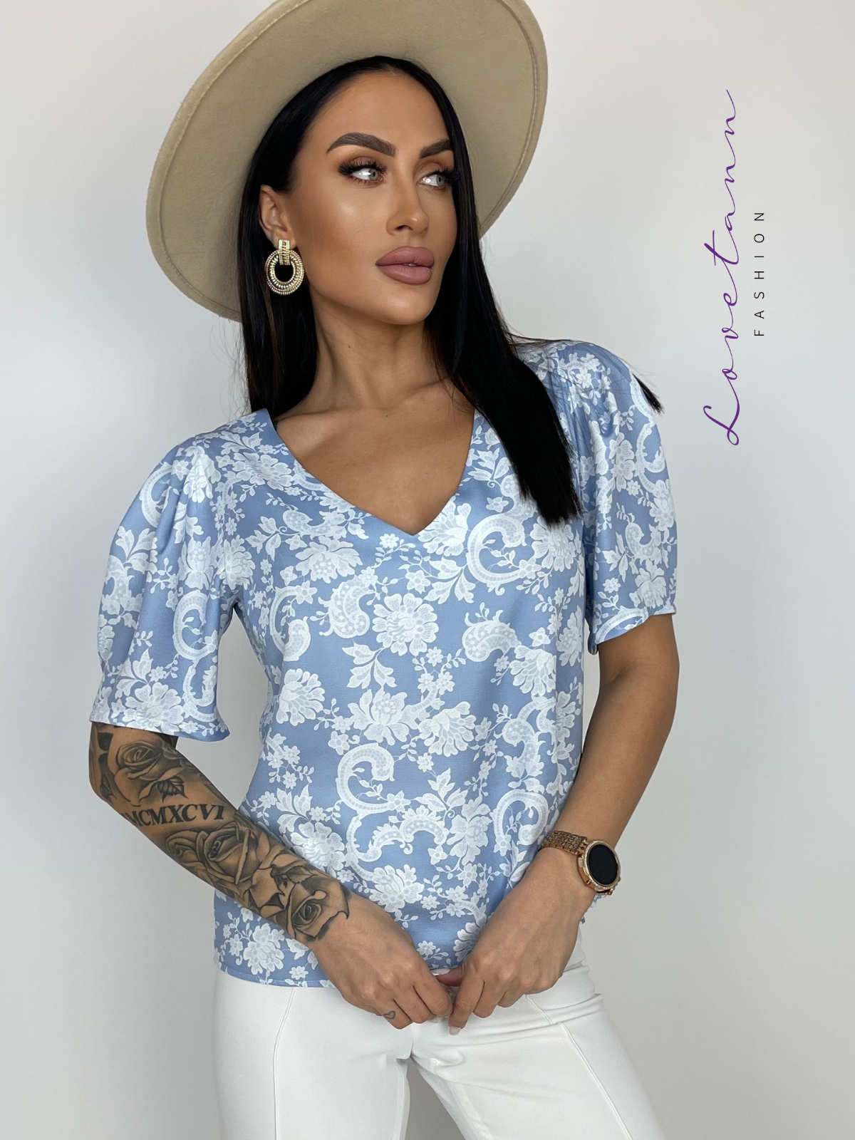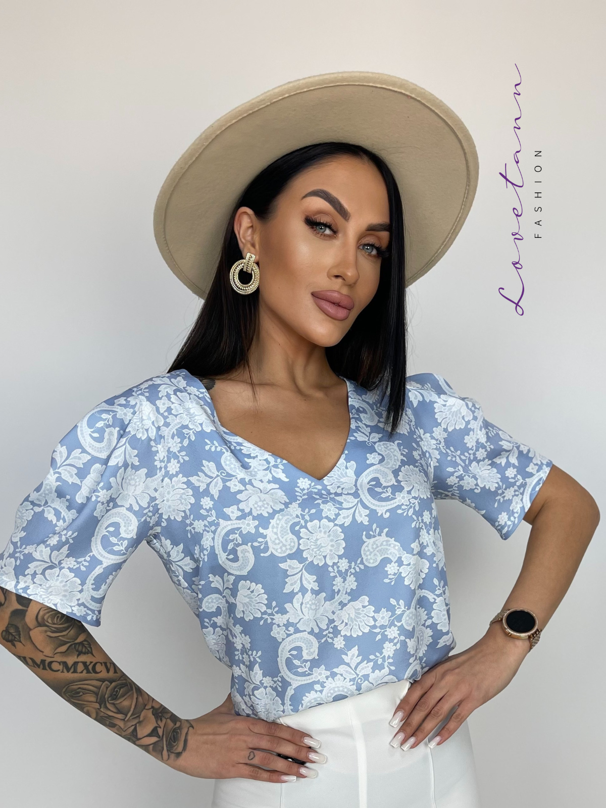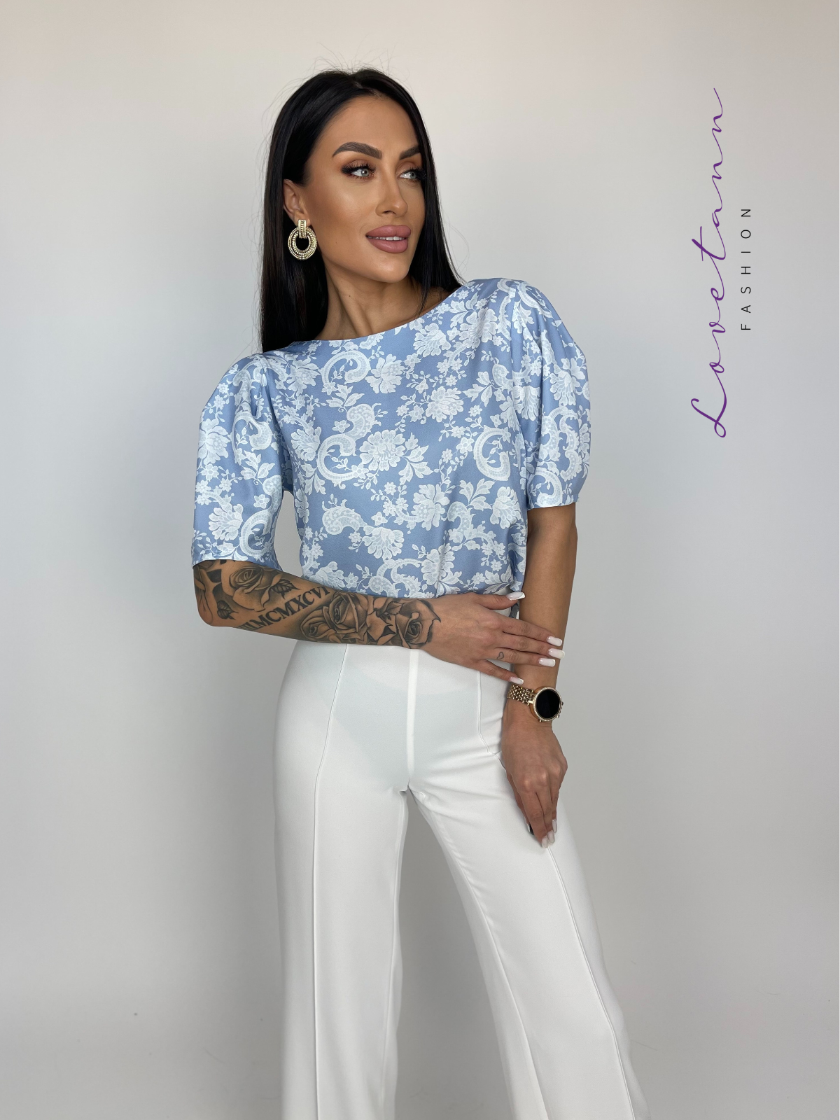 Bluzka damska z bufkami i dekoltem na plecach Princess Blue by Lovetann