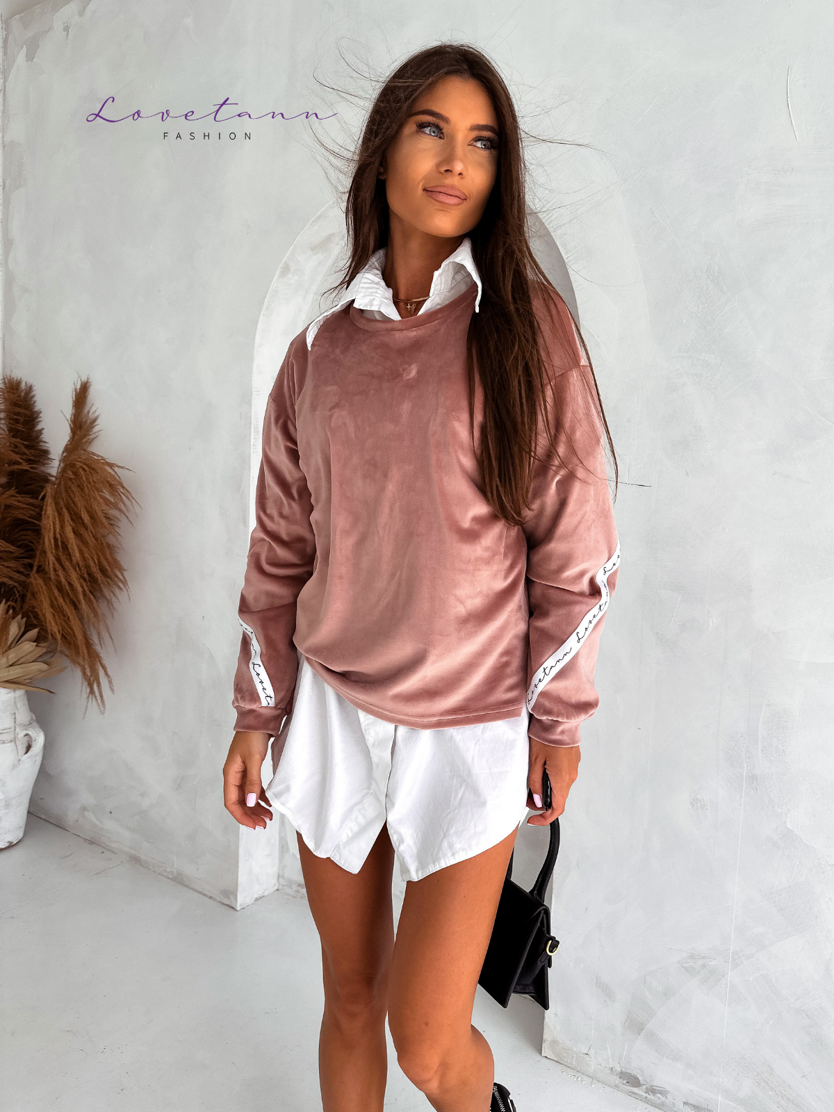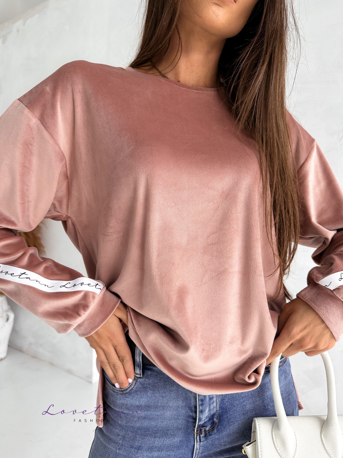 Damska bluza welurowa Brudny Róż by Lovetann