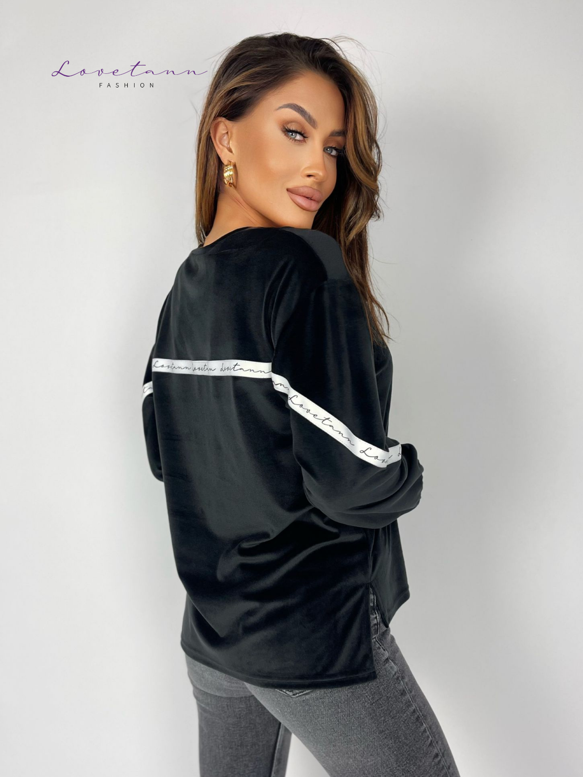 Damska bluza welurowa Basket Czarny by Lovetann