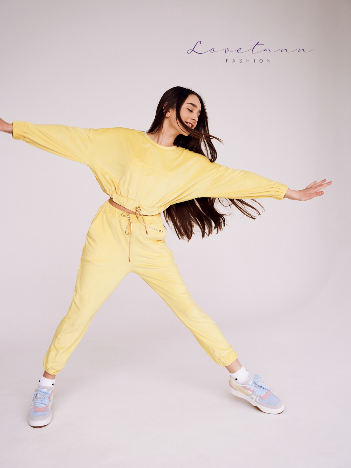 Komplet dresowy welurowy Rainbow Lemon by Lovetann