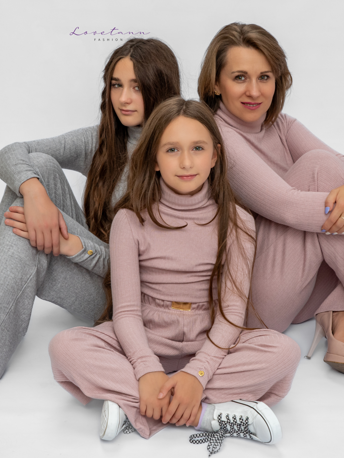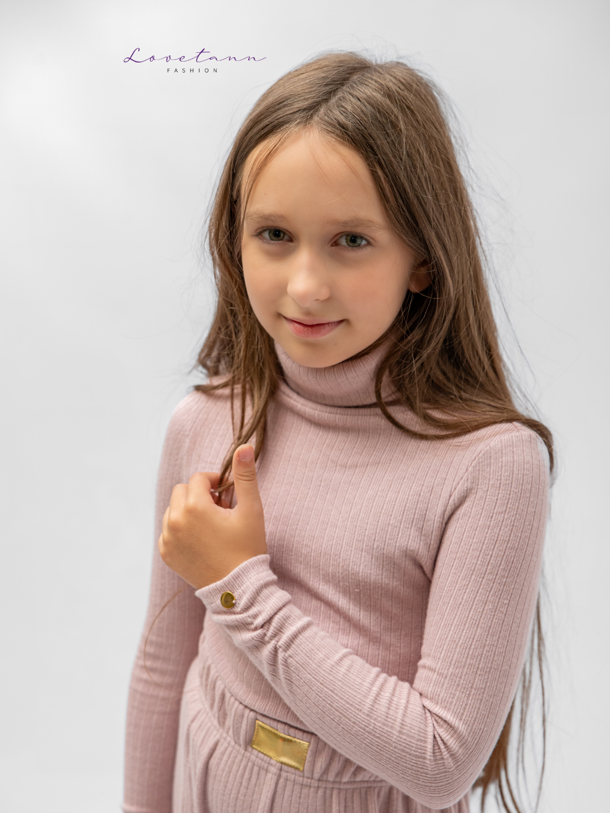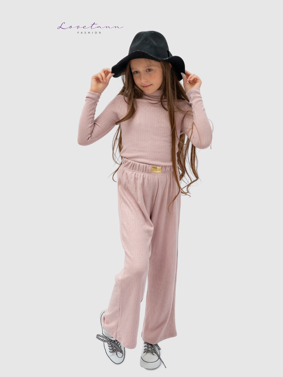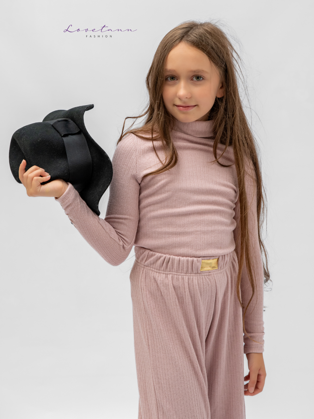 Komplet dziecięcy z dzianiny sweterkowej Emma Brudny Róż by Lovetann