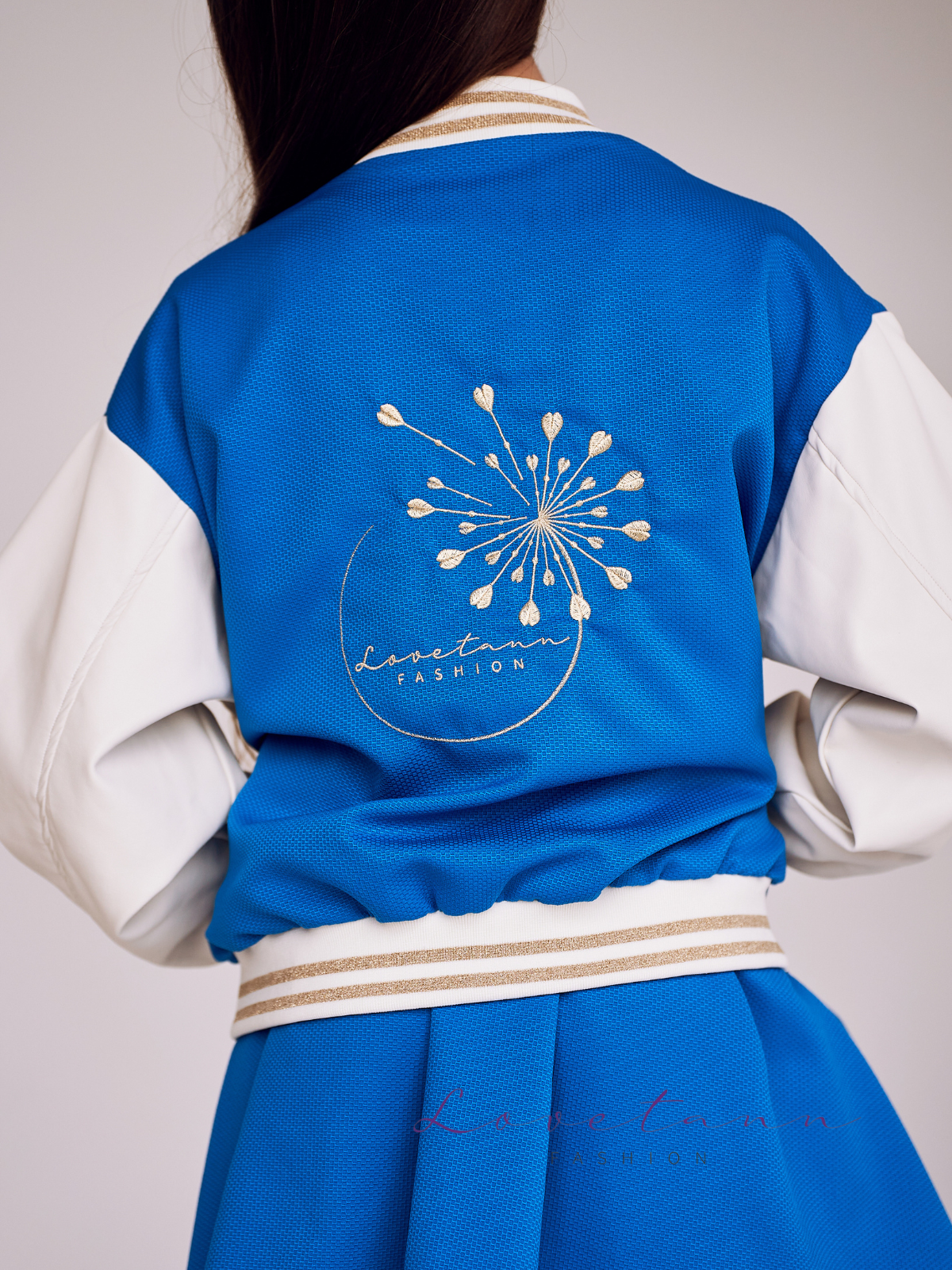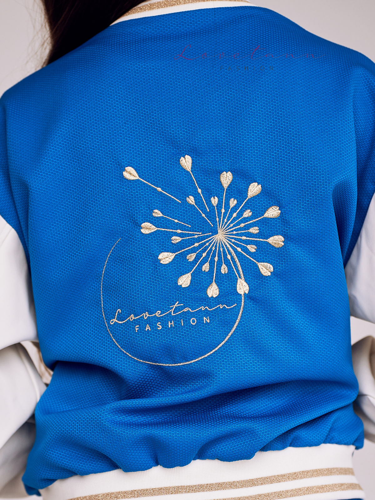 Ekskluzywna bomberka College by Lovetann z limitowanej kolekcji to połączenie młodzieżowego luzu i luksusowych detali. Jej niebieski materiał o geometrycznej strukturze wyróżnia się trójwymiarowym efektem, a śmietankowe rękawy z eco skóry nadają całości sportowego charakteru. To kurtka, która łączy wygodę, unikalny styl i perfekcyjne wykończenie.
