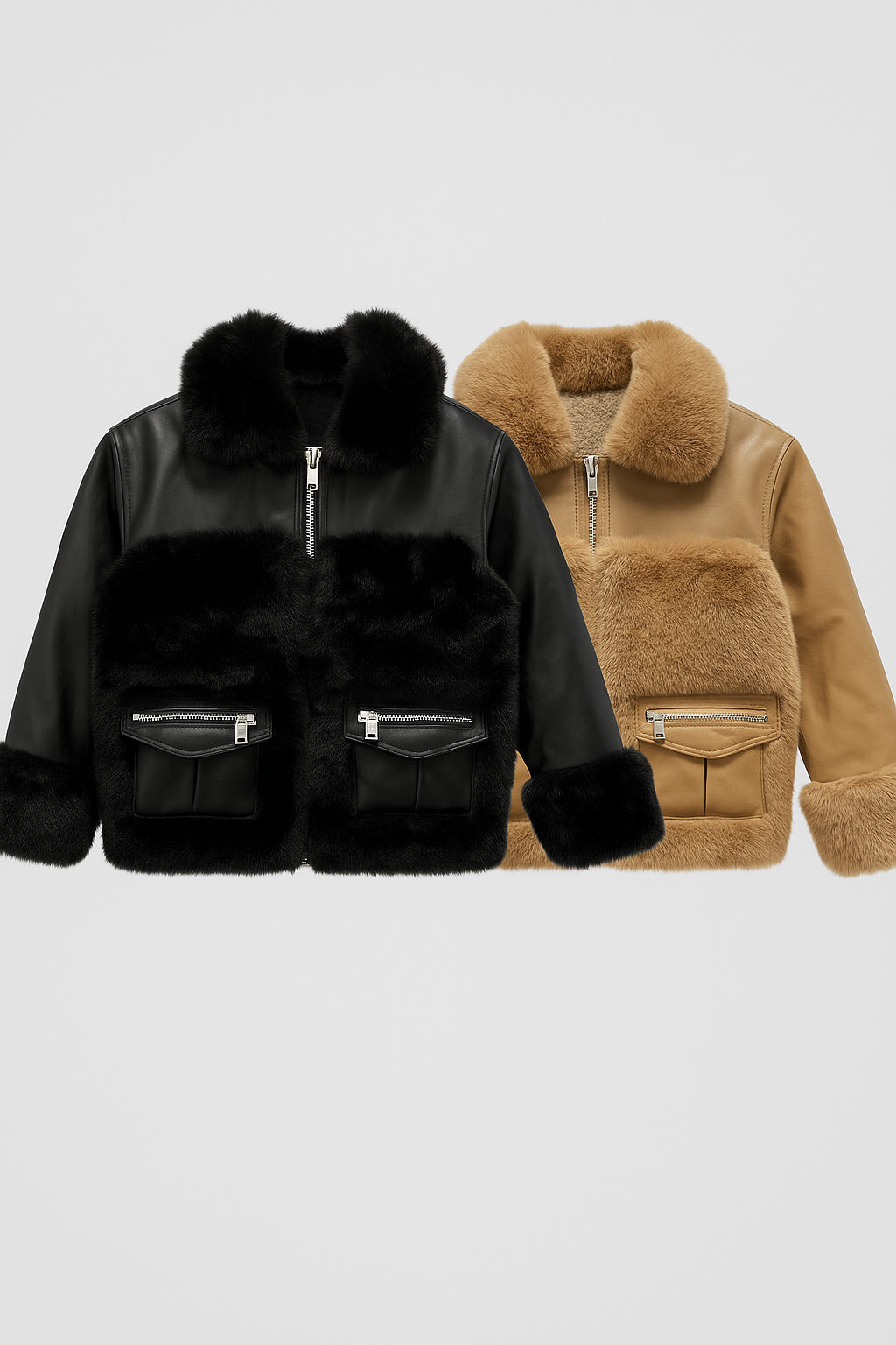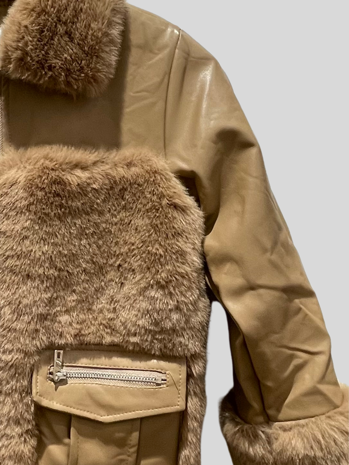 Luksusowy design – camelowa eco skóra w duecie z futerkiem nadaje szyku i ciepła.