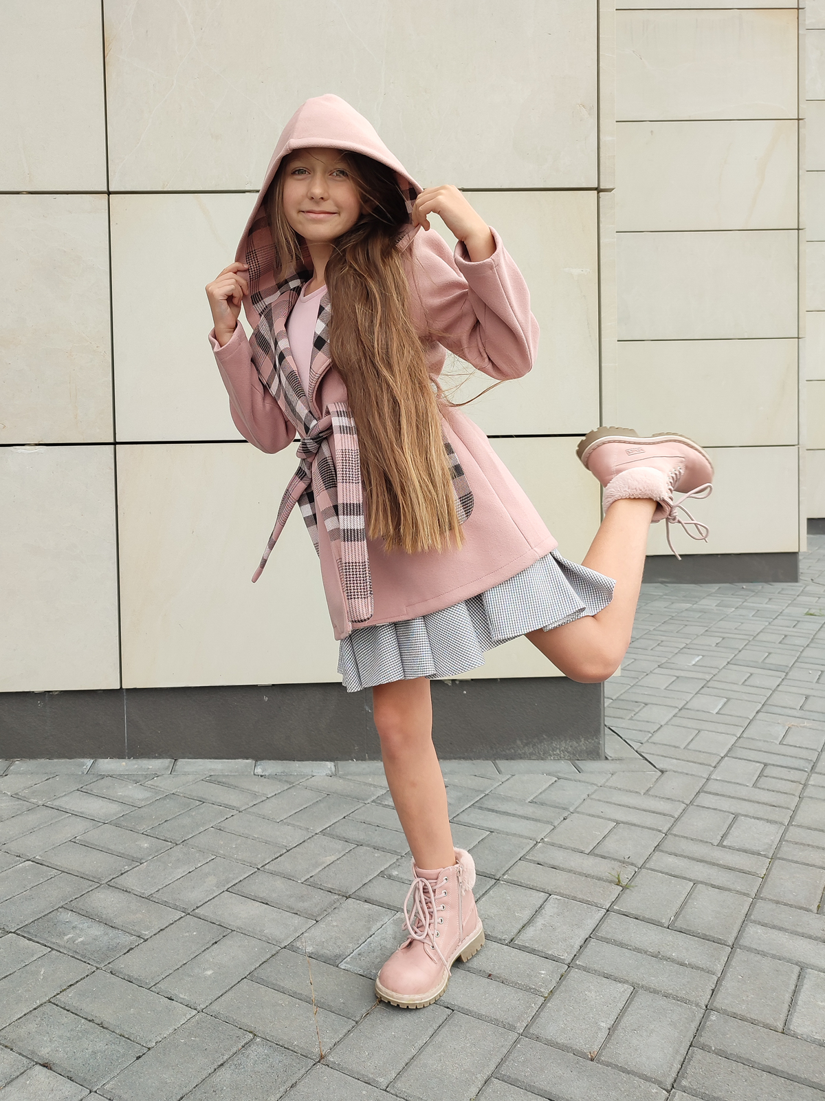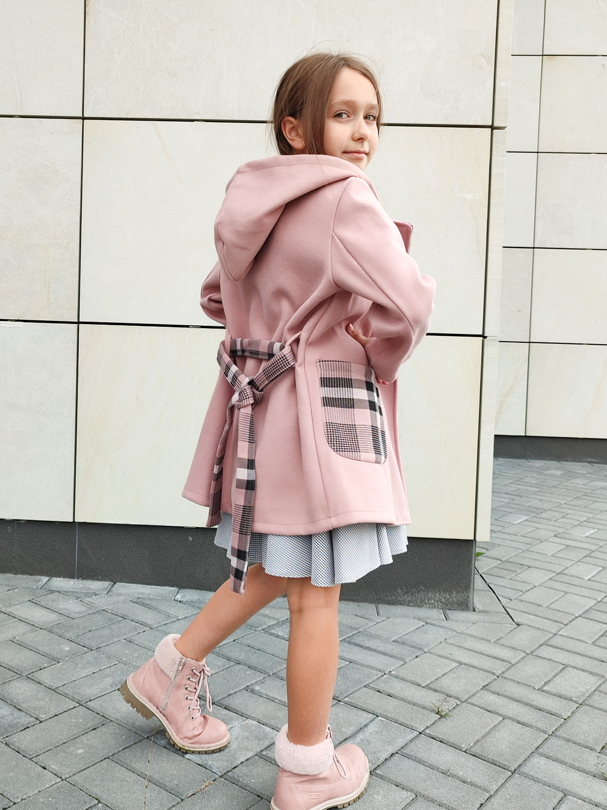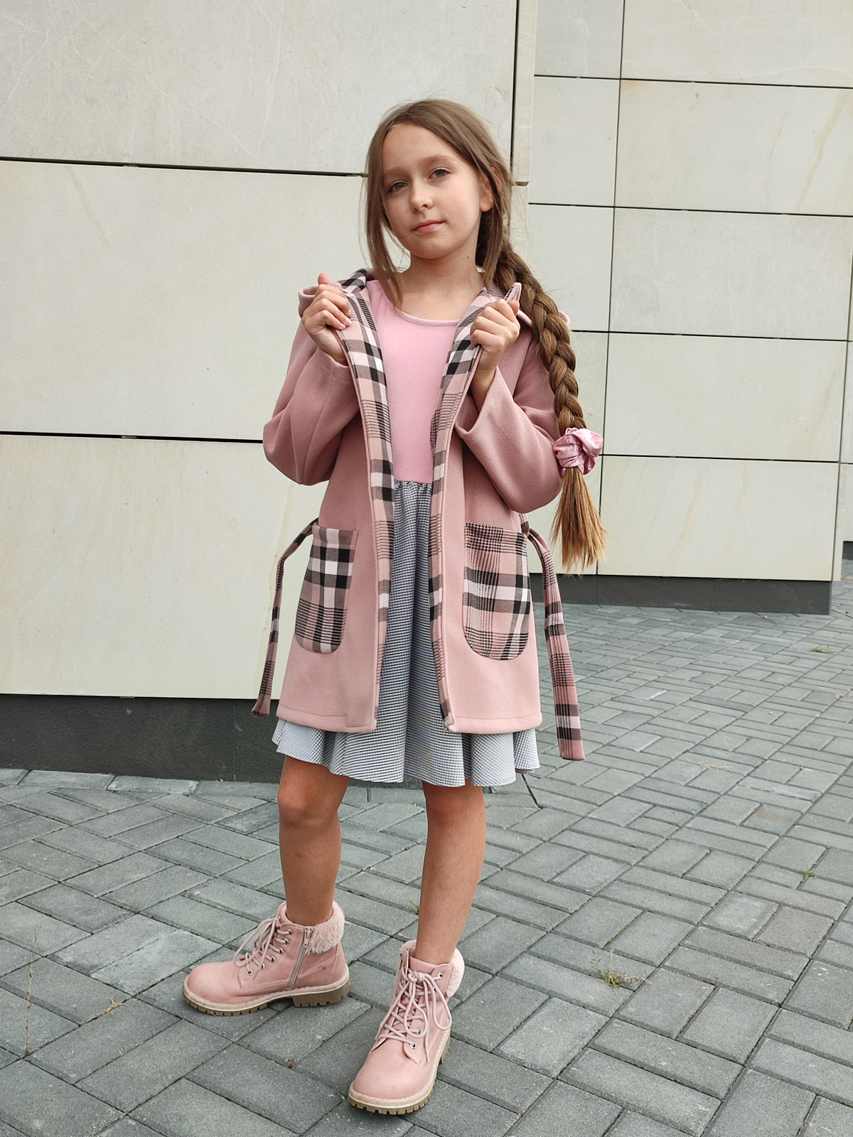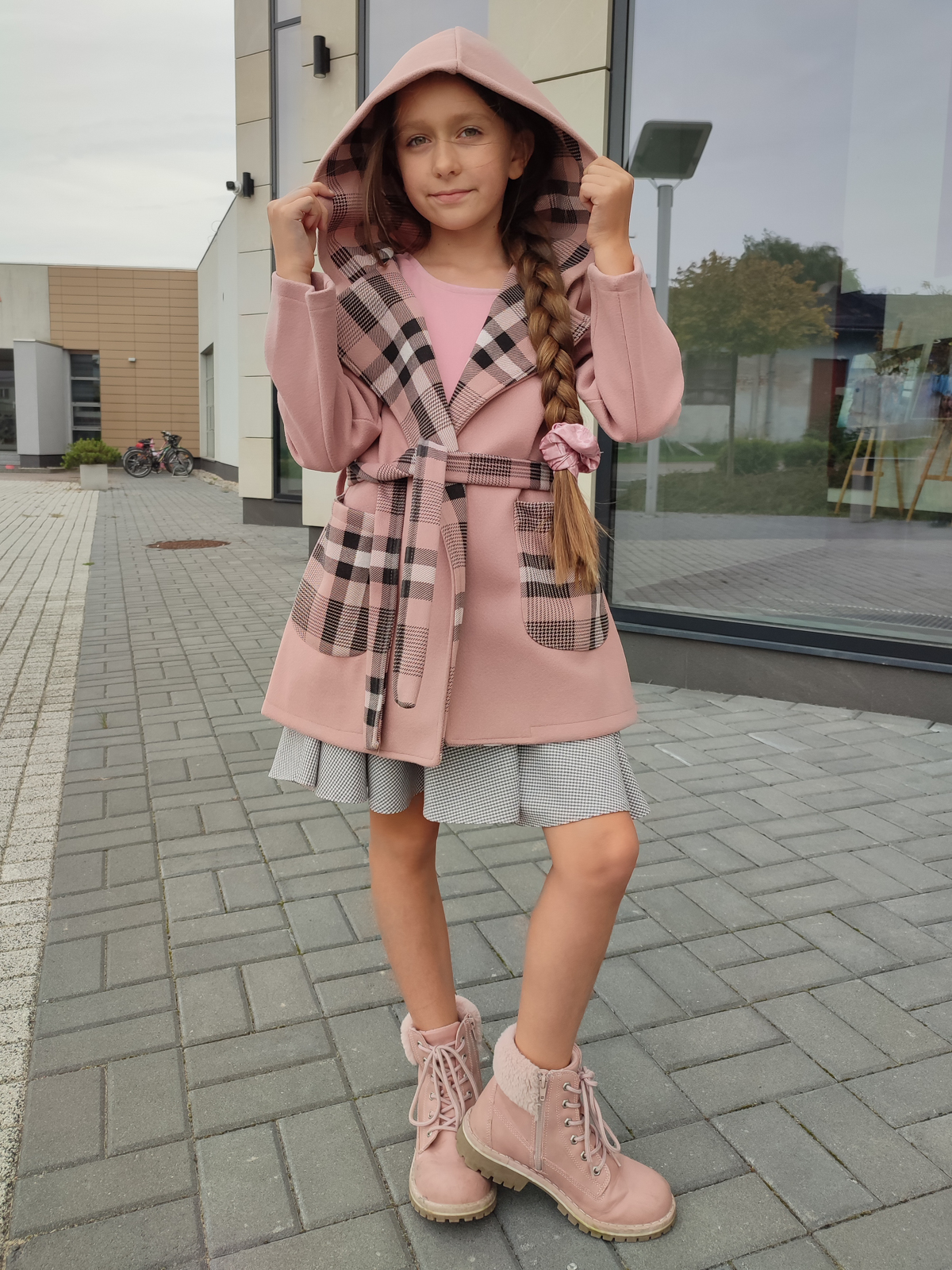 Nie ma jesieni bez płaszczyka – a szczególnie takiego, jak Piwonia 🌸. To wyjątkowe, szlafrokowe okrycie wierzchnie w kolorze brudnego różu, które łączy wygodę i dziewczęcy styl. Pasek w talii, głębokie kieszenie i kaptur z pięknym wykończeniem w kratę nadają mu charakteru i sprawiają, że jest idealnym wyborem na chłodniejsze dni.
